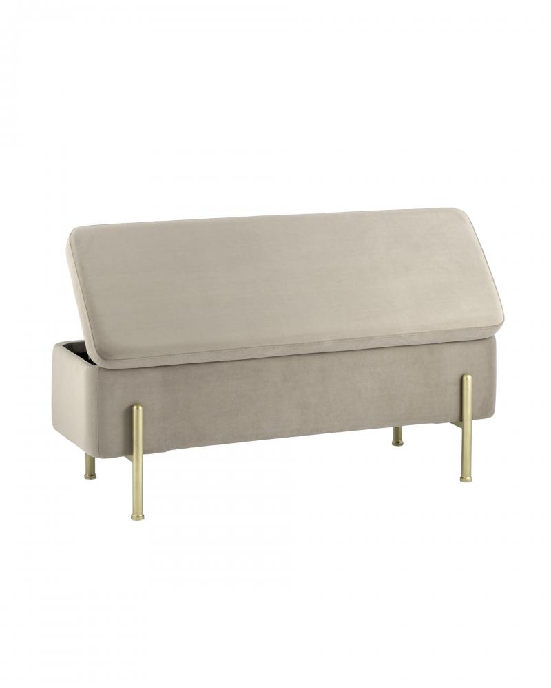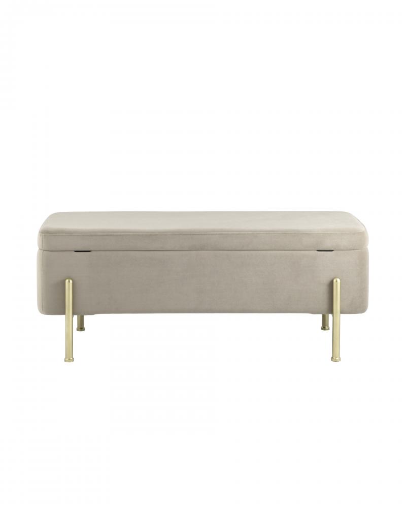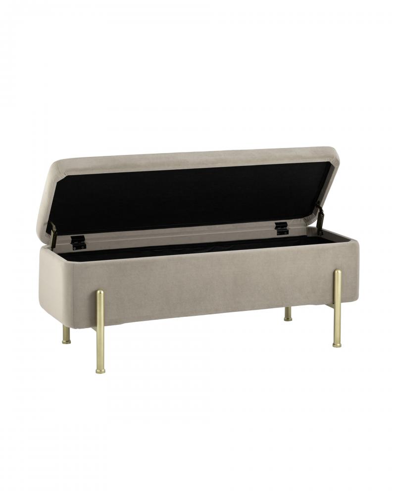 Стильная модель банкетки в обивке из мягкого велюра, прекрасно дополнит интерьер. Изящные ножки выполнены из металла в золотом цвете.