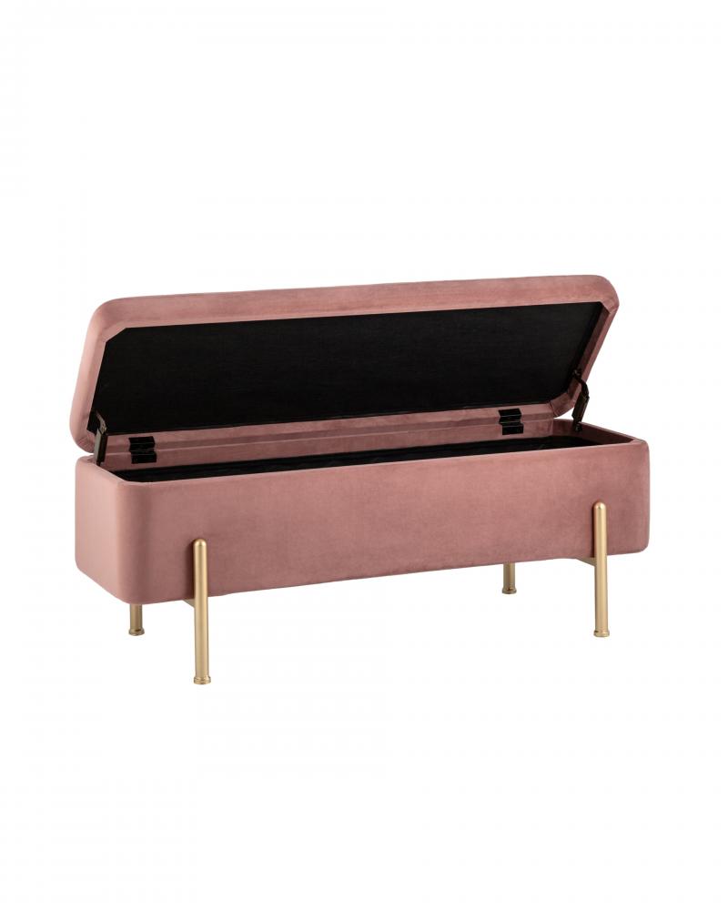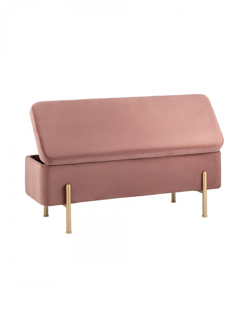 Стильная модель банкетки в обивке из мягкого велюра, прекрасно дополнит интерьер. Изящные ножки выполнены из металла в золотом цвете.