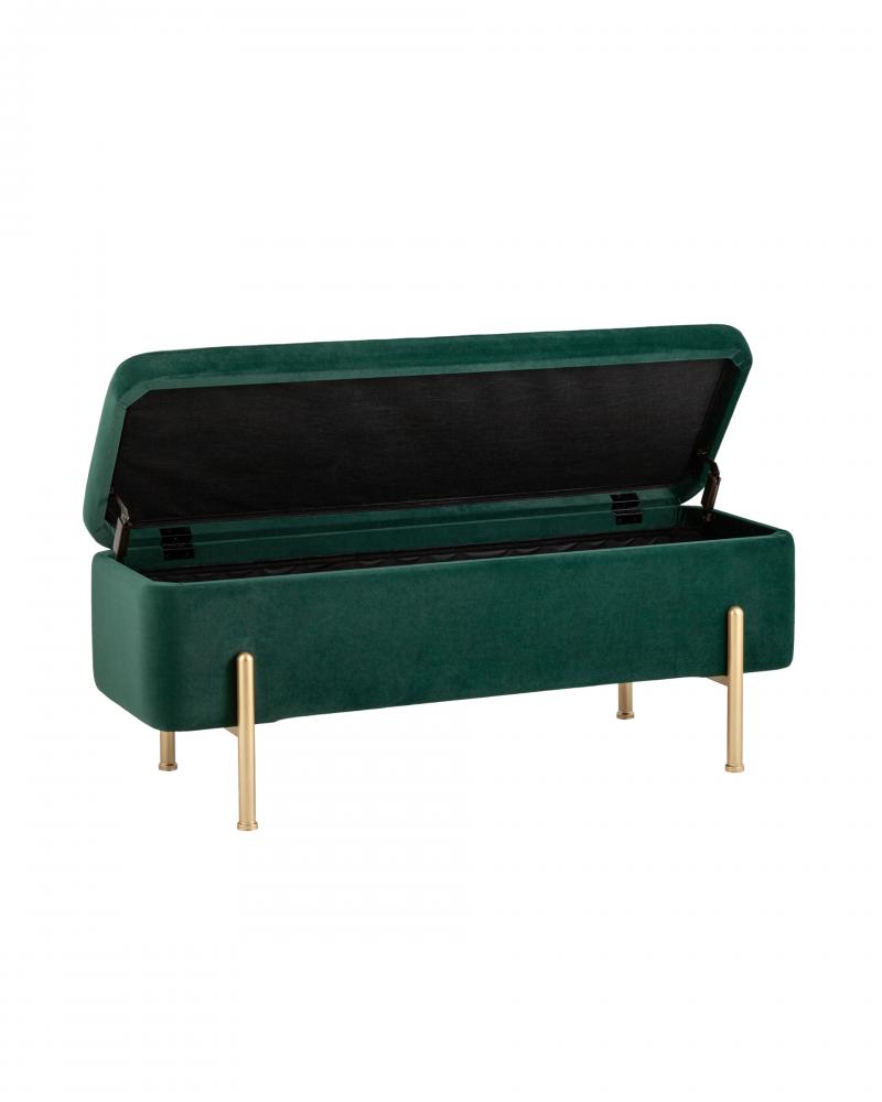 Стильная модель банкетки в обивке из мягкого велюра, прекрасно дополнит интерьер. Изящные ножки выполнены из металла в золотом цвете.