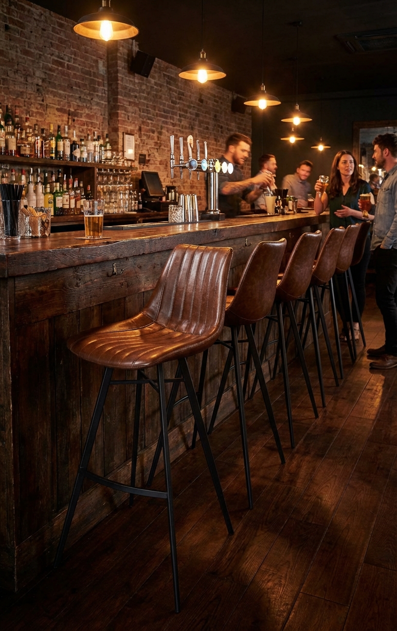 Стулья барные серии Martel– это современная и, что не мало важно функциональная модель. Декоративная прошивка обивки в сочетании с прямыми линиями ног делает этот стул очень современным. Удобное изогнутое сиденье, темно-коричневая обивка из искусственной кожи и мягкий элемент наполнителя из пенополиуретана. Это ингредиенты для идеально удобного стула. А в купе со стальными ножками опоры, соблазнит любителей дизайна своим сочетанием материала, придавая ему строгий , но очаровательный внешний вид.
