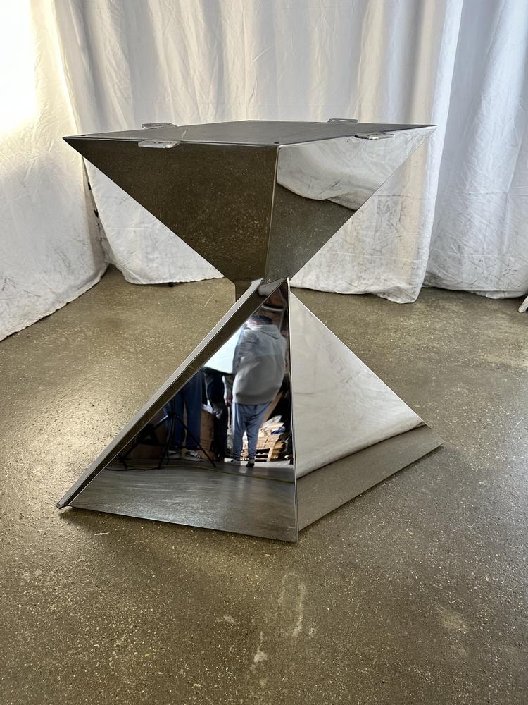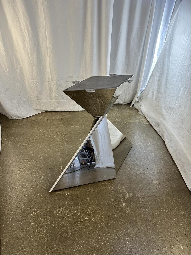 Пристенное подстолье- консоль из полированной нержавеющей стали (зеркальное). Лаковое покрытие.
