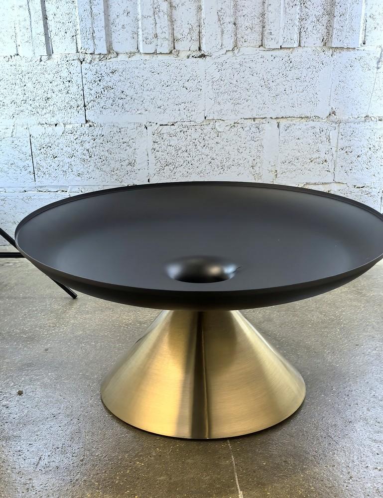 Журнальное подстолье из полированной нержавеющей стали золотого цвета (нитрит титана). Чаша черная матовая (порошковое напыление).