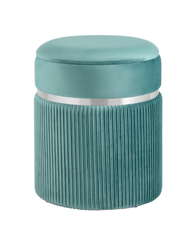 Лаконичная модель пуфа в обивке из мягкого велюра, которая дополнит ваш интерьер. Обивка красиво украшена декоративными оборками и металлическим ободком.