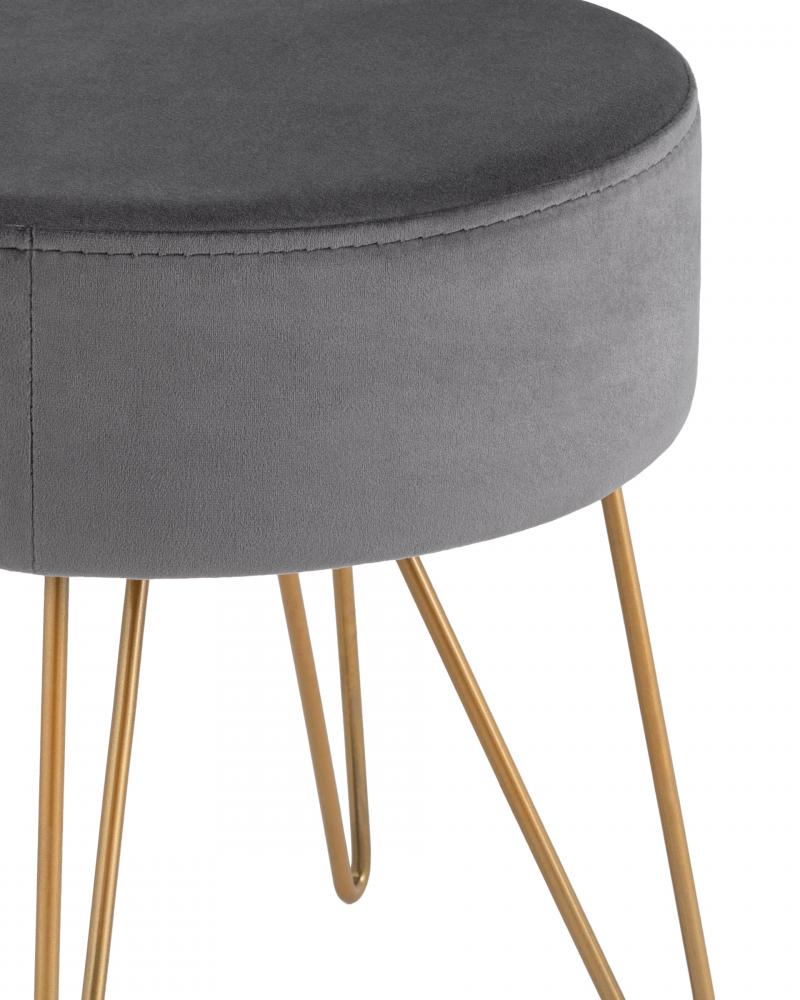 Компактный мягкий пуф на металлических ножках. Мягкая обивка выполнена из износостойкого велюра, тактильно приятный и долговечный материал.