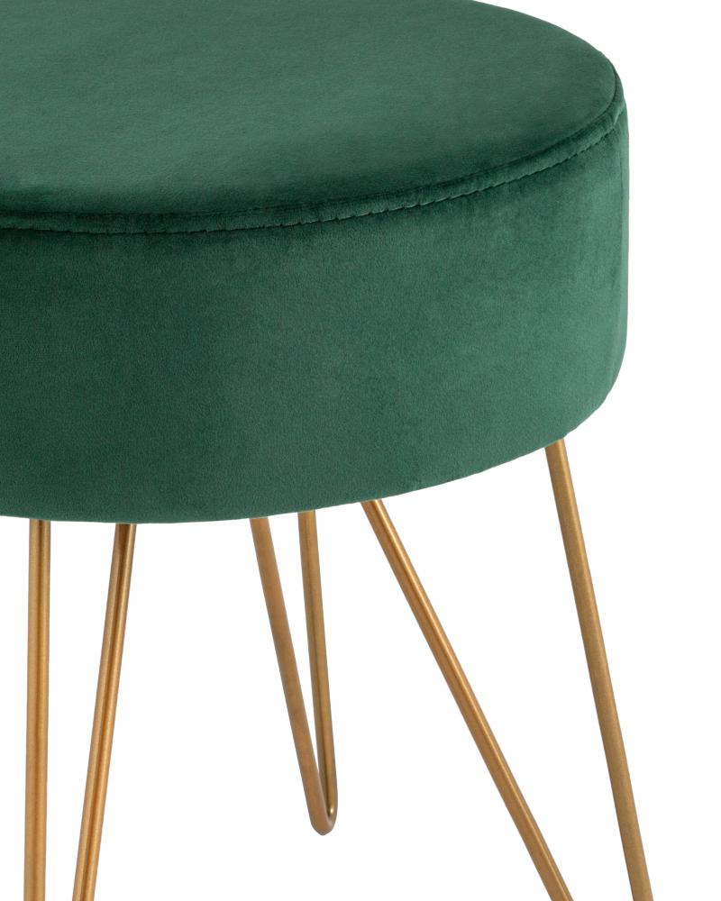 Компактный мягкий пуф на металлических ножках. Мягкая обивка выполнена из износостойкого велюра, тактильно приятный и долговечный материал.