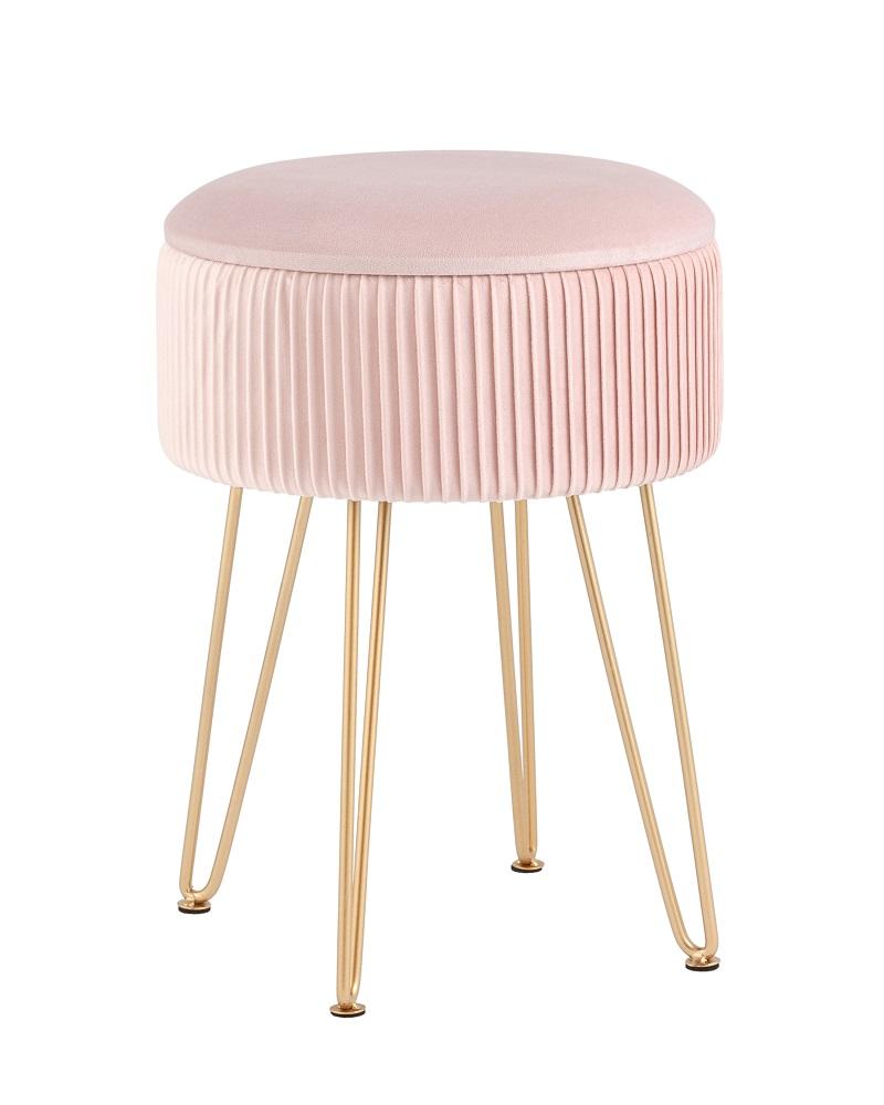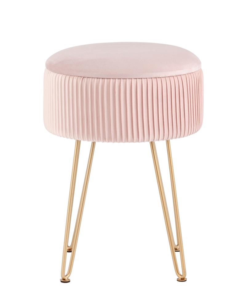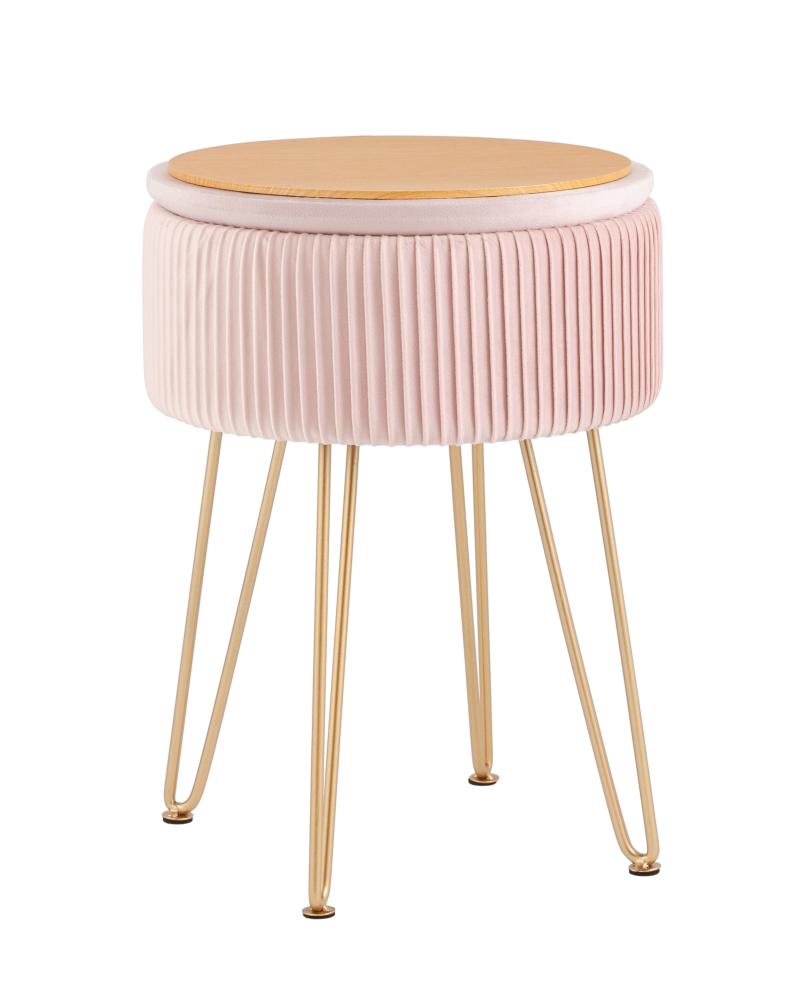Лаконичный круглый пуф на металлических ножках с ящиком для хранения. Мягкая обивка выполнена из износостойкого велюра, тактильно приятный и долговечный материал.