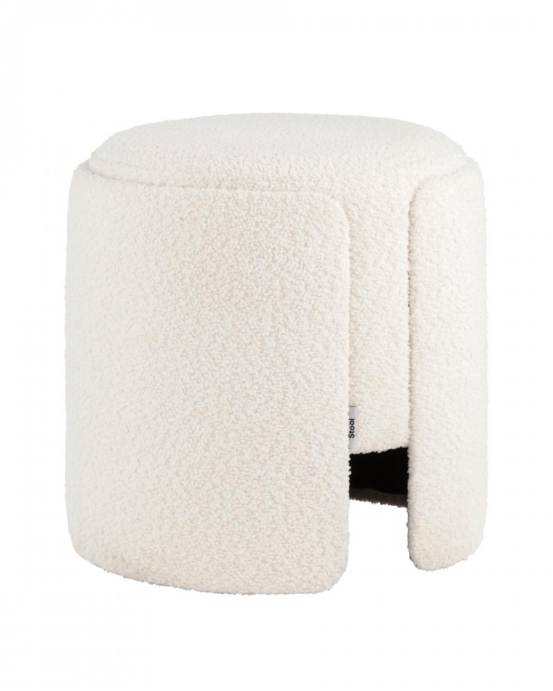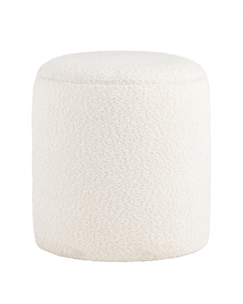 Лаконичный круглый пуф на металлических ножках. Мягкая обивка выполнена из ткани букле, тактильно приятный и долговечный материал.