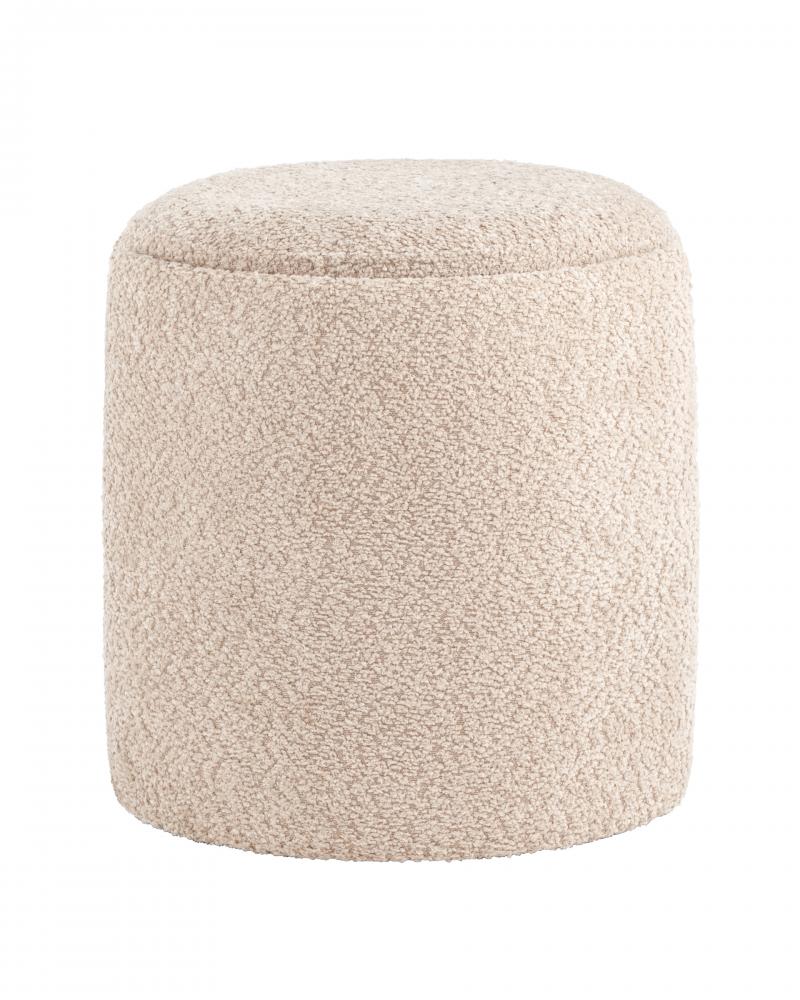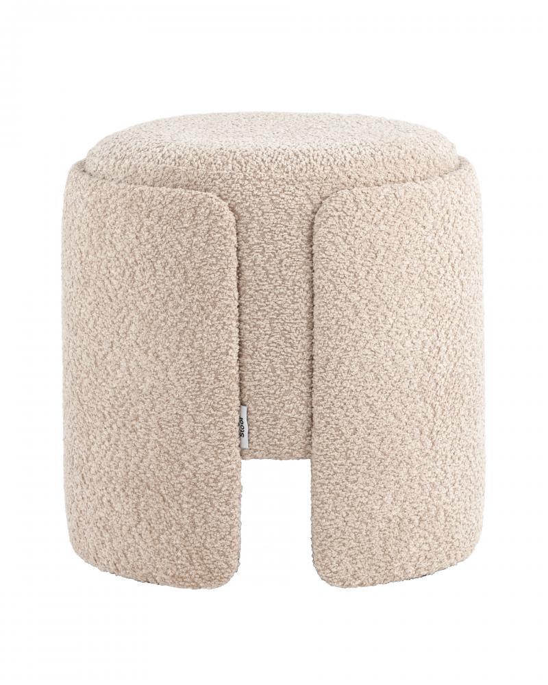 Лаконичный круглый пуф на металлических ножках. Мягкая обивка выполнена из ткани букле, тактильно приятный и долговечный материал.