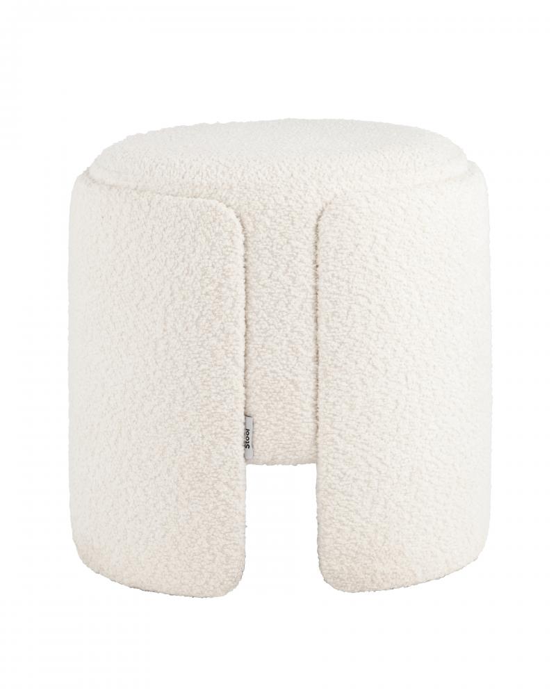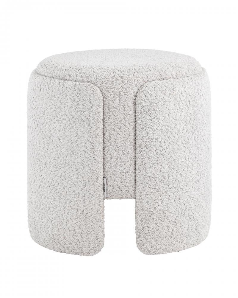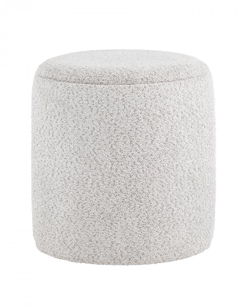 Лаконичный круглый пуф на металлических ножках. Мягкая обивка выполнена из ткани букле, тактильно приятный и долговечный материал.