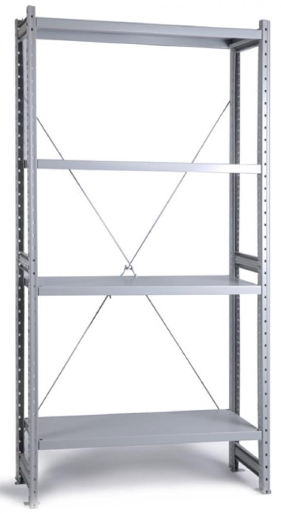 Для обеспечения жесткости в продольном направлении, по задней плоскости стеллажа, стойки одной секции стянуты крестовиной.