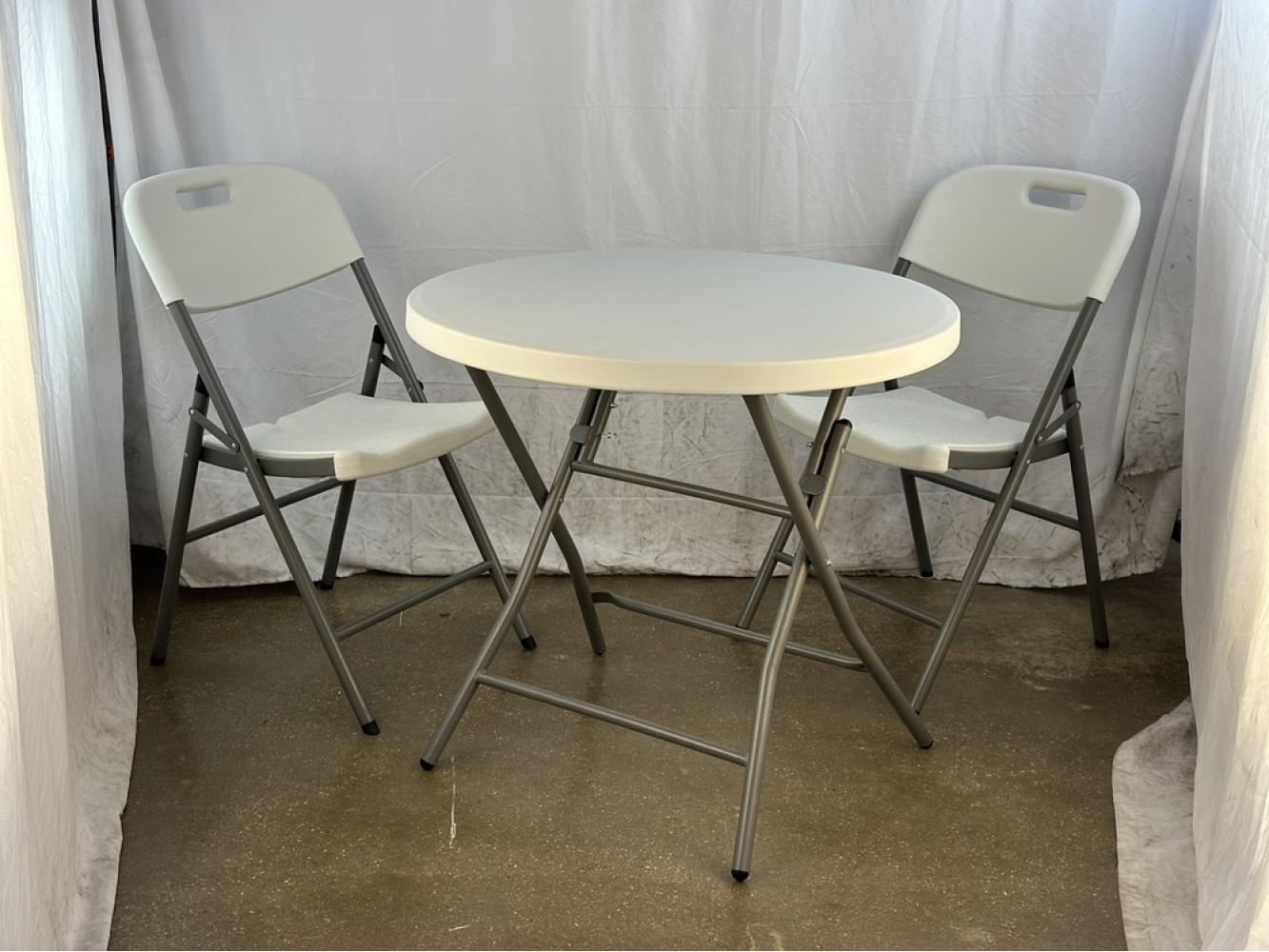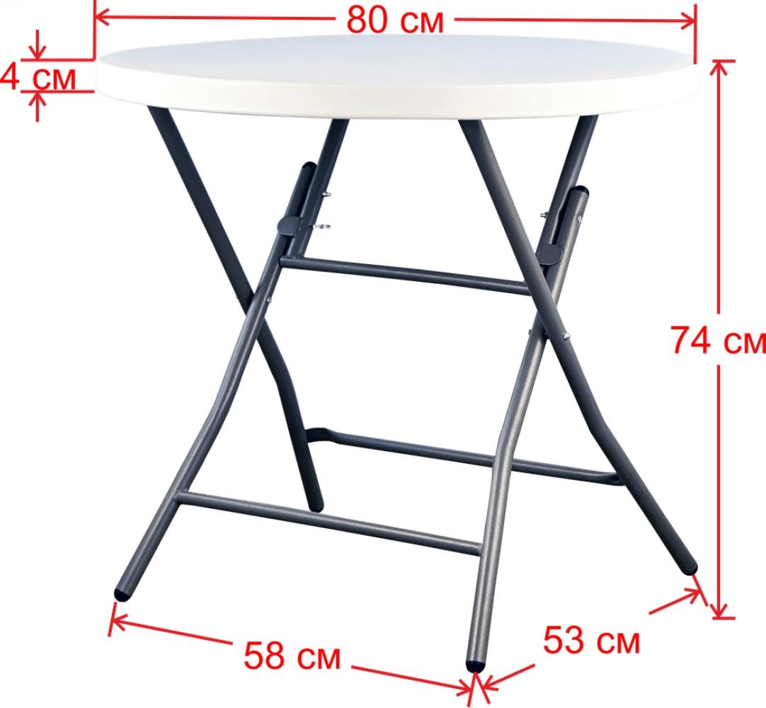 Складной стол. Цвет: белый (гранит). Толщина столешницы 3.5 см. Размер в сложенном состоянии 80х104х5 см. Труба D- 25х0.8 мм.
