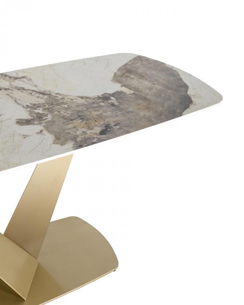 Столешница сочетает в себе прочную керамику, покрытую слоем закалённого стекла для практичности и стиля.