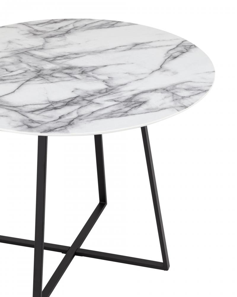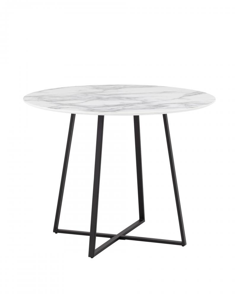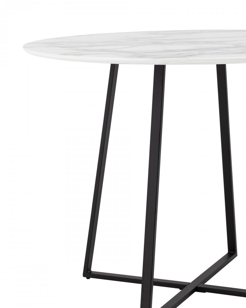 Роскошный обеденный стол для кухни. Круглая столешница с рисунком белого мрамора выполнена из МДФ - прочного, экологически безопасного материала, который устойчив к перепадам температур и повышенной влажности.