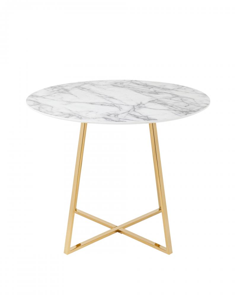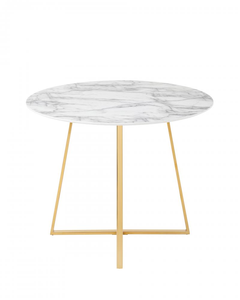 Роскошный обеденный стол для кухни. Круглая столешница с рисунком белого мрамора выполнена из МДФ - прочного, экологически безопасного материала, который устойчив к перепадам температур и повышенной влажности.