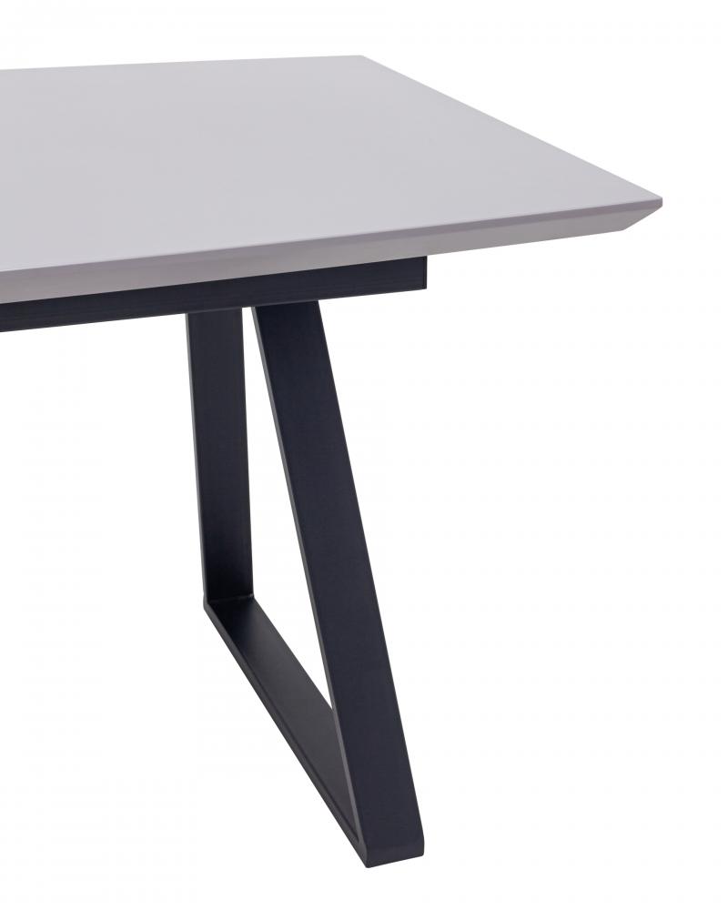 Столешница выполнена из прочного и долговечного МДФ. Серая поверхность столешницы гармонично сочетается с черными металлическими ножками.