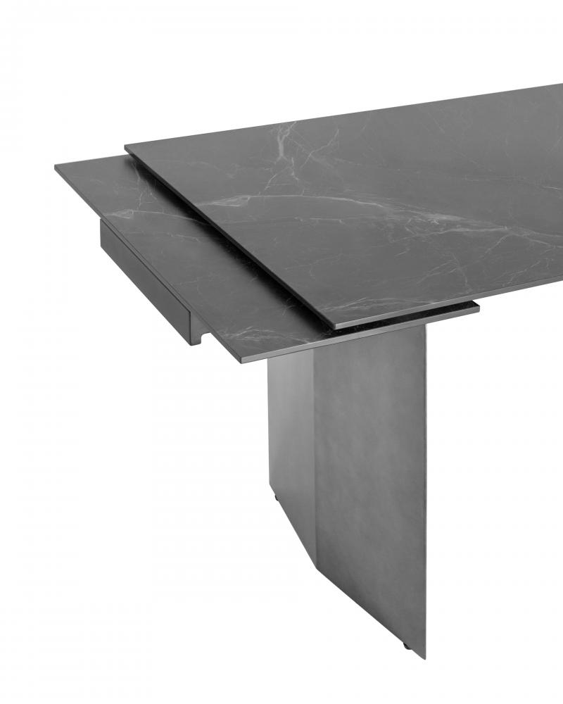 Массивный стол Селин в монохромном цвете с мраморным рисунком. Прямоугольная столешница выполнена из цельной керамики- долговечный и прочный материал устойчивый к внешним воздействиям.