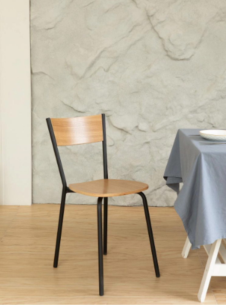 Сиденье и спинка стула Марсель выполнены из гнутой фанеры облицованной шпоном дуба. Каркас выполнен из стальной трубы диаметром 18мм.