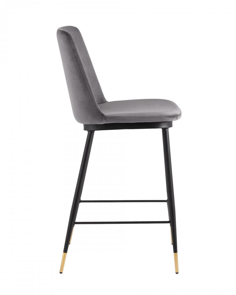 Стильный полубарный стул с обивкой из велюра. Надежная опора достигается благодаря металлическому каркасу и удобным устойчивым ножкам, красиво украшенным золотом.
