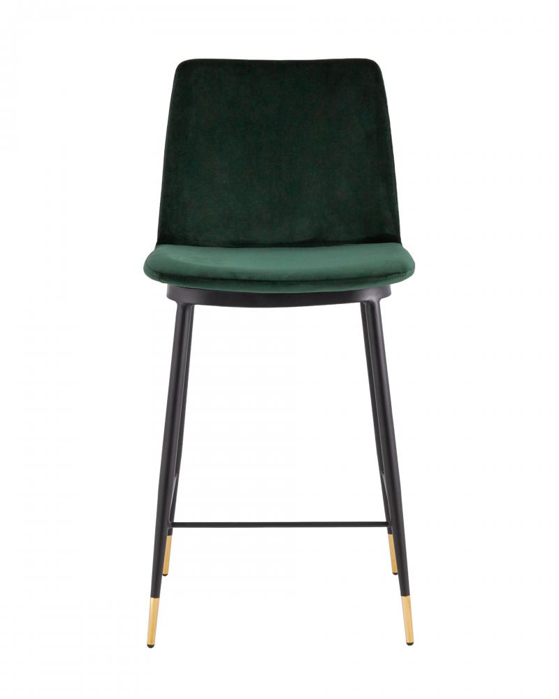 Стильный полубарный стул с обивкой из велюра. Надежная опора достигается благодаря металлическому каркасу и удобным устойчивым ножкам, красиво украшенным золотом.