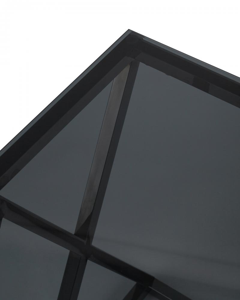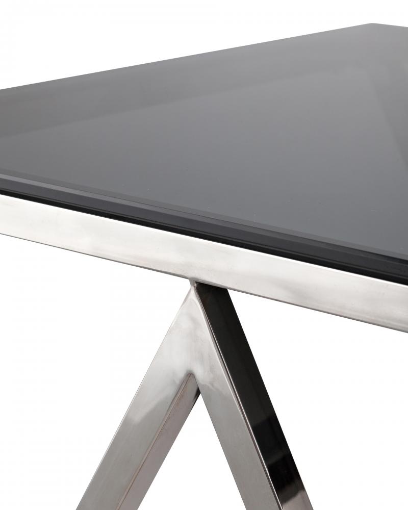Столешница выполнена из дымчатого закаленного стекла, которое обладает повышенной прочностью и стойкостью к перепадам температур, способно выдерживать большие нагрузки.