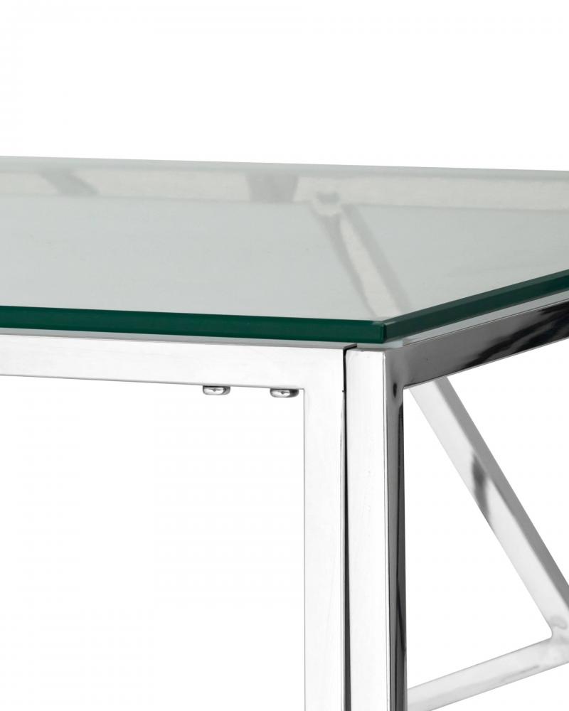 Столешница выполнена из прозрачного закаленного стекла, которое обладает повышенной прочностью и стойкостью к перепадам температур, способно выдерживать большие нагрузки.